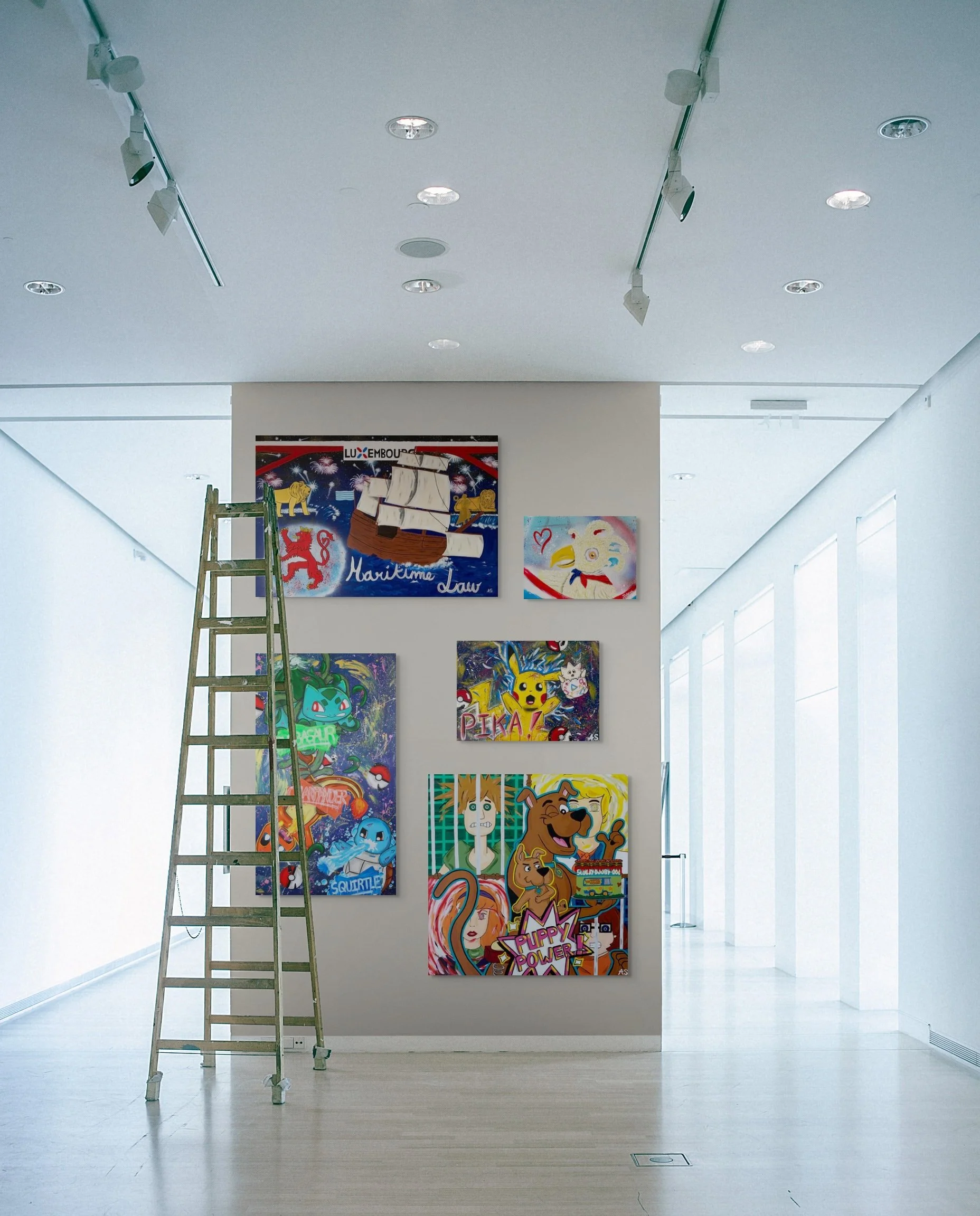 My cultural commentary works represent artistic interventions in significant cultural moments and institutional contexts. Through these pieces, I explore how contemporary art can both document and participate in cultural evolution — whether celebrating gaming culture's 25-year impact through the beloved Pokémon universe, honoring 30 years of Luxembourg's maritime legal heritage, reimagining classic cartoon animation through beloved characters like Scooby-Doo, or commemorating the enduring friendship between France and Luxembourg.