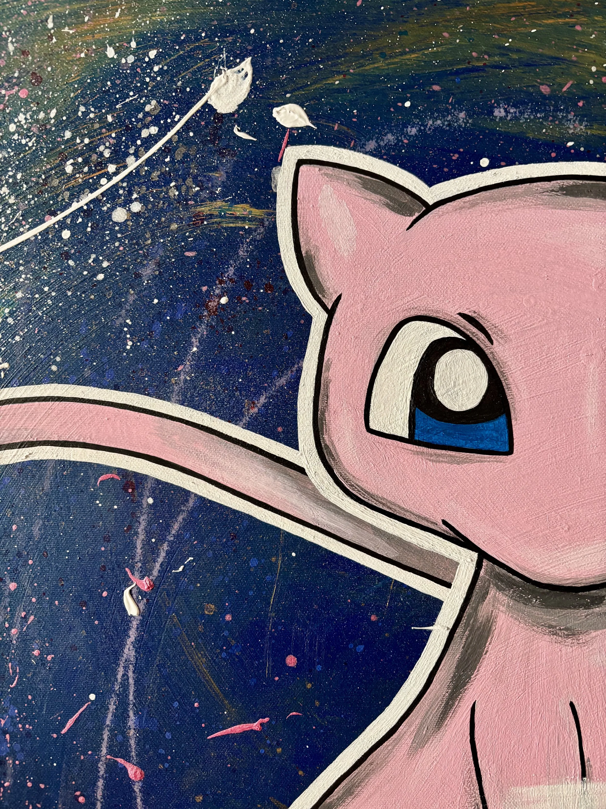 The ancient and mystical Mew enters this abstract world, appearing peaceful and slightly naive as always. However, dark traces on its body reveal that the journey to reach this realm has not been easy.